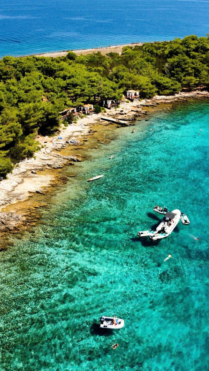 Next, we head to Zečevo Island, a peaceful paradise where the sea sparkles and nature is untouched. Along the way, keep your eyes peeled - playful dolphins often join us, making the journey even more unforgettable.